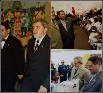 então recebido no aeroporto pelo presidente de São Tomé, Fradique Bandeira Melo